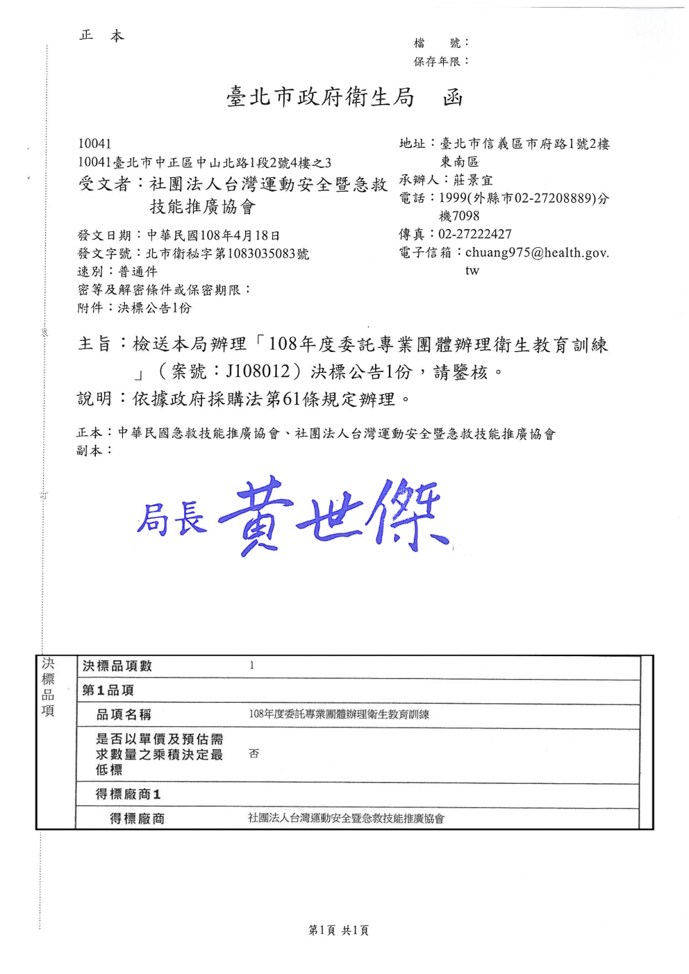 狂賀本會得標臺北市政府衛生局108 年度委託專業團體辦理衛生教育訓練